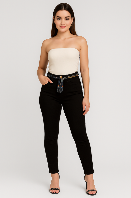 Calça Skinny Jeans Preta Cintura Alta com Cinto – Oppnus Cigarrete