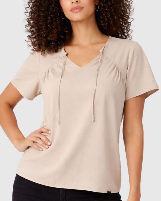 Blusa Marialícia Feminina Manga Curta em Malha Viscose Bege