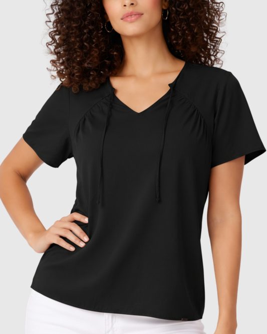 Blusa Marialícia Feminina Manga Curta em Malha Viscose Preta