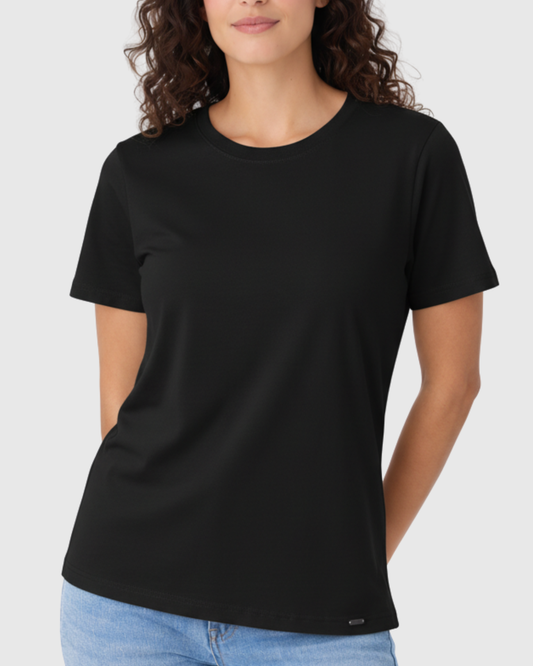 Camiseta Básica Feminina Marialícia Algodão Preta