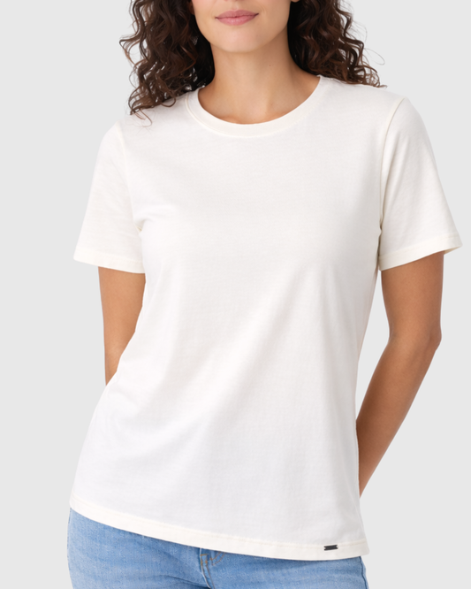 Camiseta Marialícia Básica Feminina Manga Curta Algodão Off White
