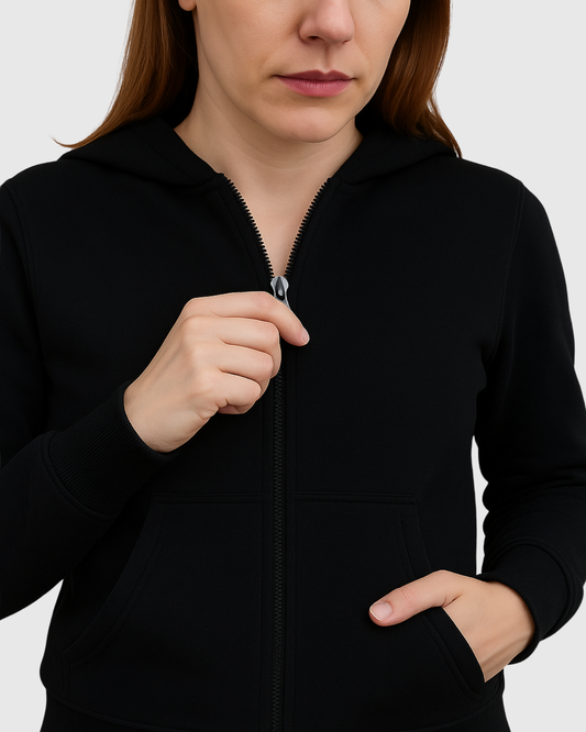 Jaqueta Preta Marialícia Feminina em Moletom com Capuz