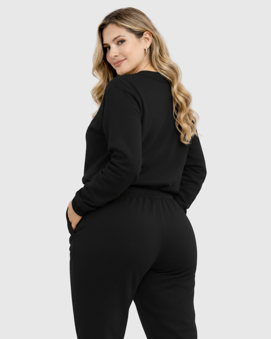 Conjunto Moletom Feminino Marialícia Preto Algodão Casual