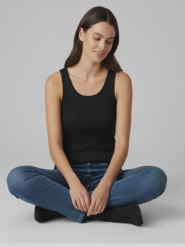Para quem busca uma peça versátil, elegante e essencial no guarda-roupa, a Blusa Regata Canelada Marialícia na cor preta é a escolha certa. Com alças largas e modelagem levemente ajustada, essa regata valoriza o corpo com conforto e praticidade, perfeita para o dia a dia ou produções mais elaboradas.