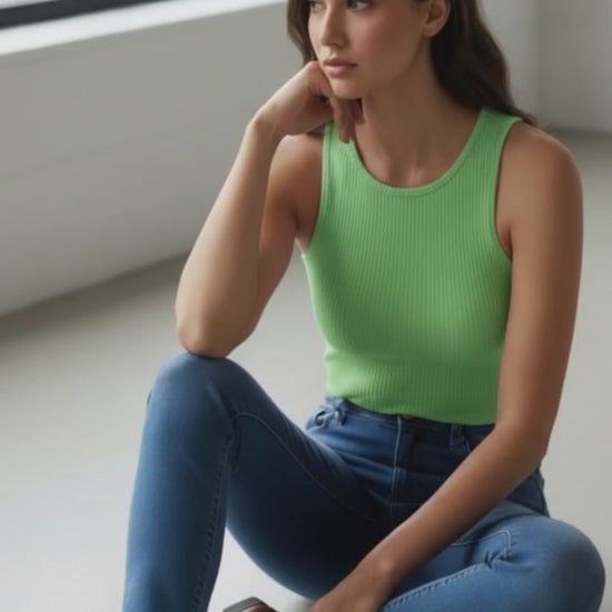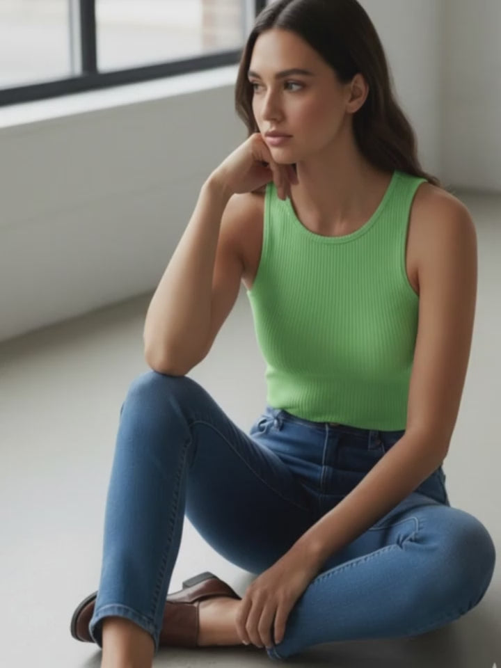A Blusa Regata Canelada Marialícia na cor verde claro é a escolha ideal para quem busca frescor, conforto e estilo em uma peça básica e versátil. Com alças largas e modelagem levemente ajustada ao corpo, ela proporciona liberdade de movimentos e ótimo caimento para o uso no dia a dia.