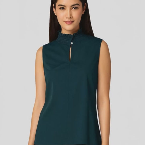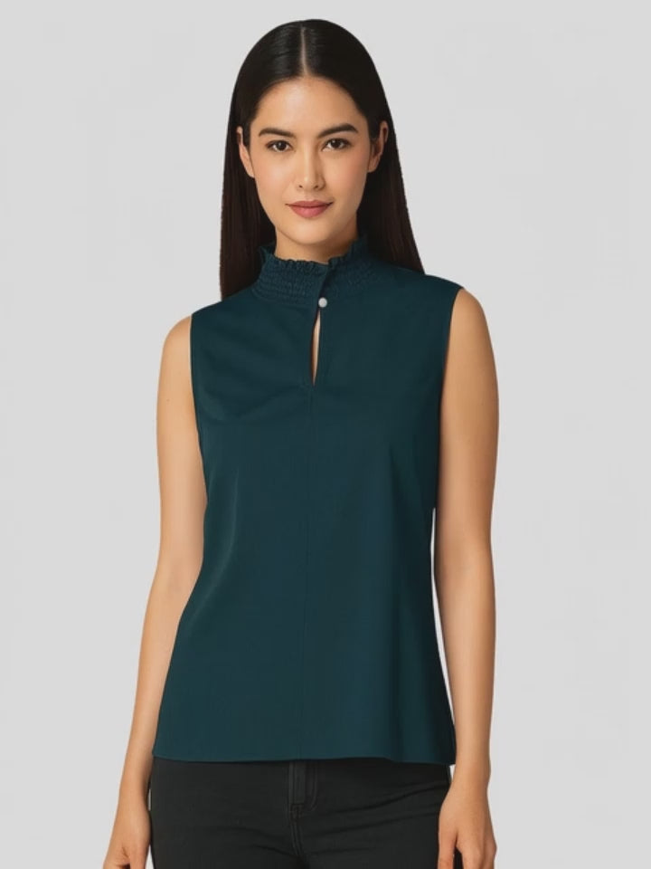 Combinando charme, leveza e elegância, a Blusa Sem Manga Marialícia na cor verde escuro é perfeita para quem busca estilo e conforto em uma única peça. Seu tecido fluido, a modelagem reta e a gola alta franzida criam um visual sofisticado e moderno para o dia a dia.