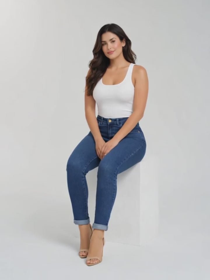 A Calça Jeans Skinny com Tecnologia Sculp Up da Oppnus foi pensada para mulheres que buscam modelagem precisa e realce da silhueta com estilo e segurança. Sua estrutura com cintura alta e efeito levanta bumbum valoriza as curvas de forma natural e elegante.