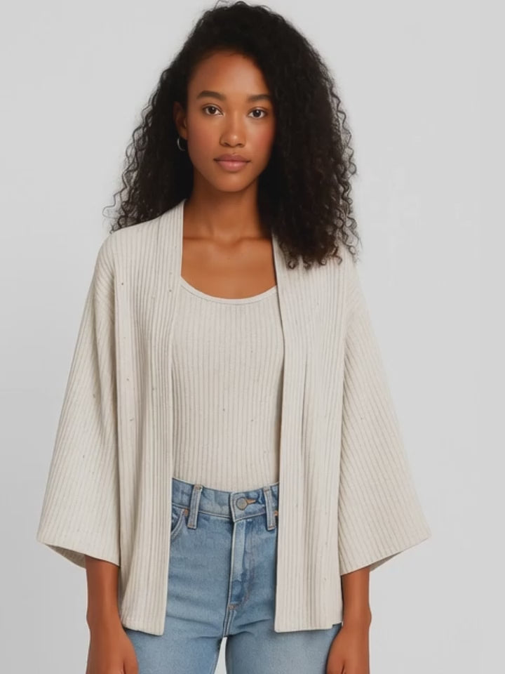Conjunto Feminino Marialícia Regata + Cardigan Off-White – Casual Chic e Confortável